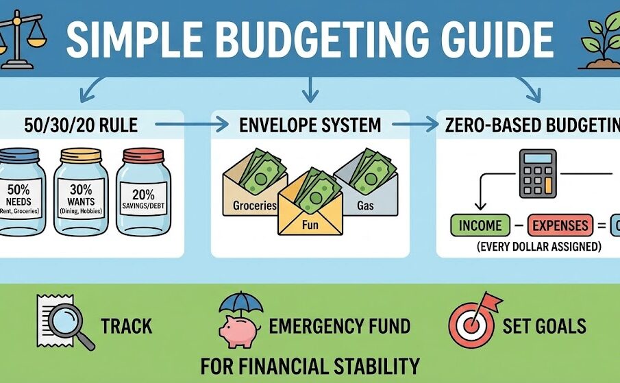 A simple and effective budgeting method is the 50-30-20 rule.