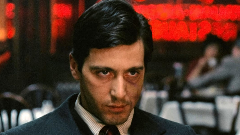 Pacino’s subtle acting — particularly through his eyes and body language — perfectly illustrates Michael’s internal transformation.